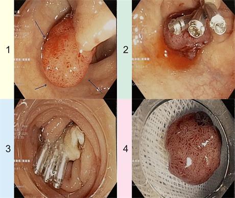 患者手 术过程:钛夹封闭、高频电切、标本送检